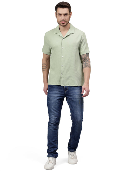 Crushed Texture Half Sleeve Green Trending Men's Wear Shirt