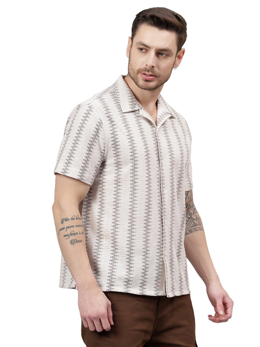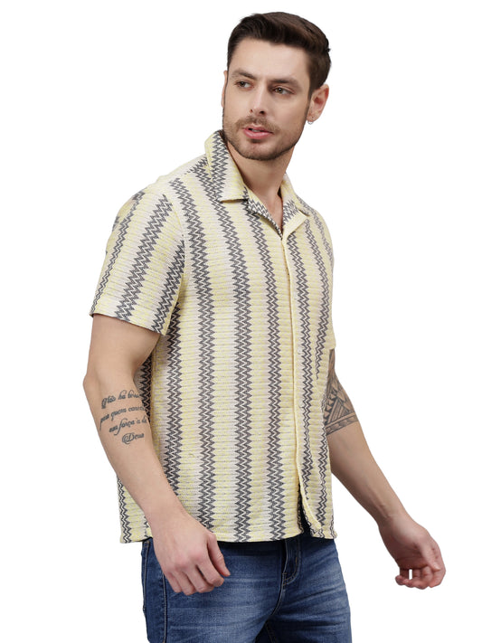 Cotton Crochet Half Sleeve Muliticolor Zig Zag Trending Men's Wear Casual Shirt