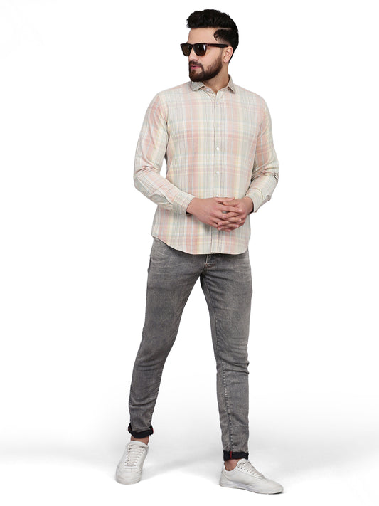 Men Maroon & Beige Regular Fit Corduroy Checkered Casual Shirt