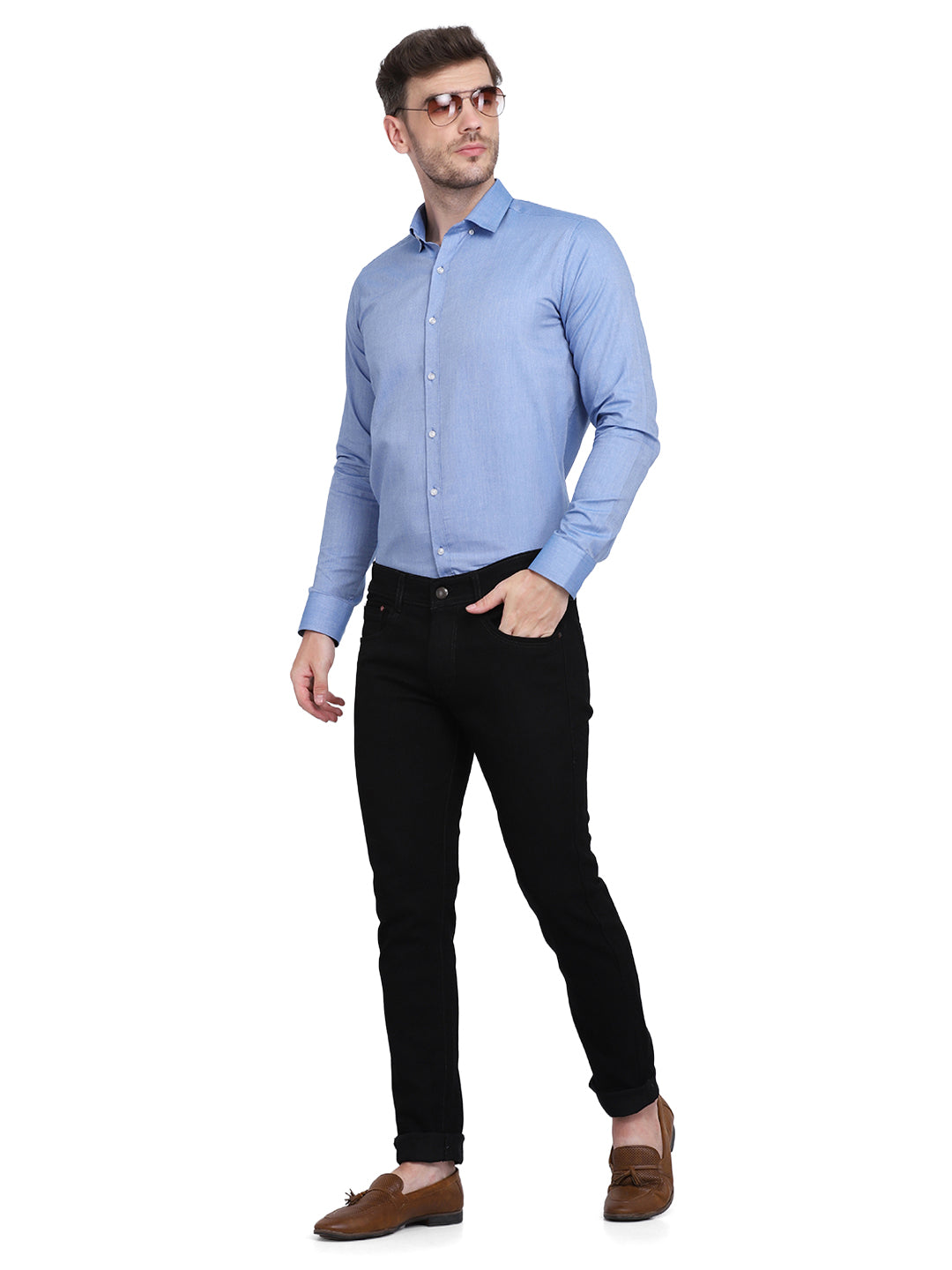 Turn up your style with this royal blue solid oxford formal shirt. This statement stylish shirt with a button down collar, full-sleeves, curved hem. This blue piece can be teamed with dark wash jeans and a fashionable blazer for your next work meeting.