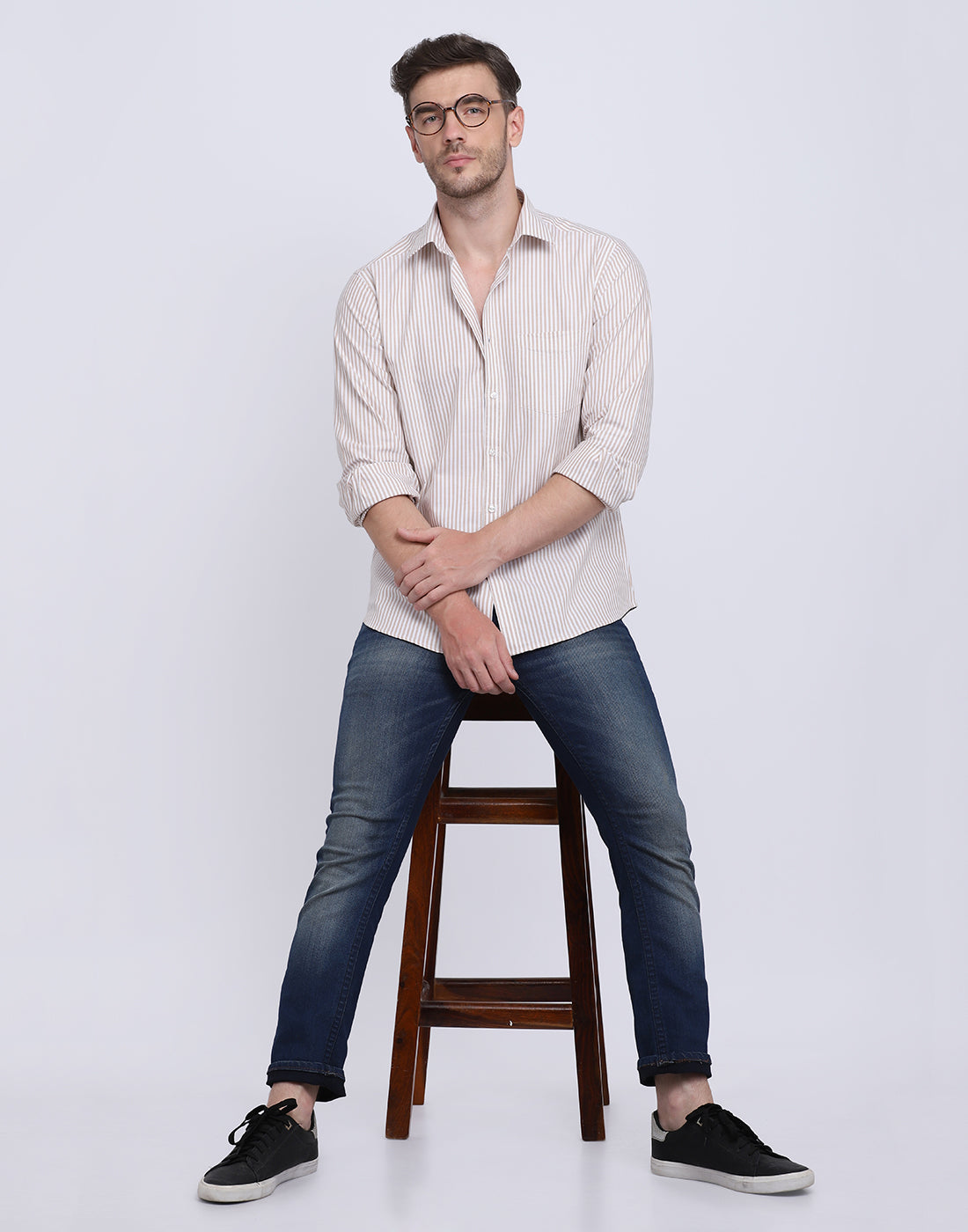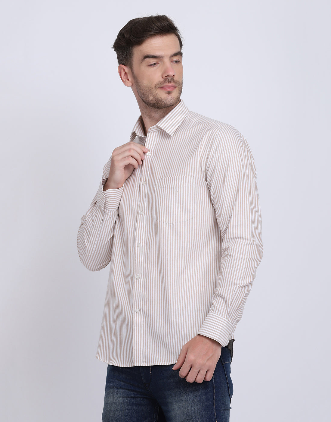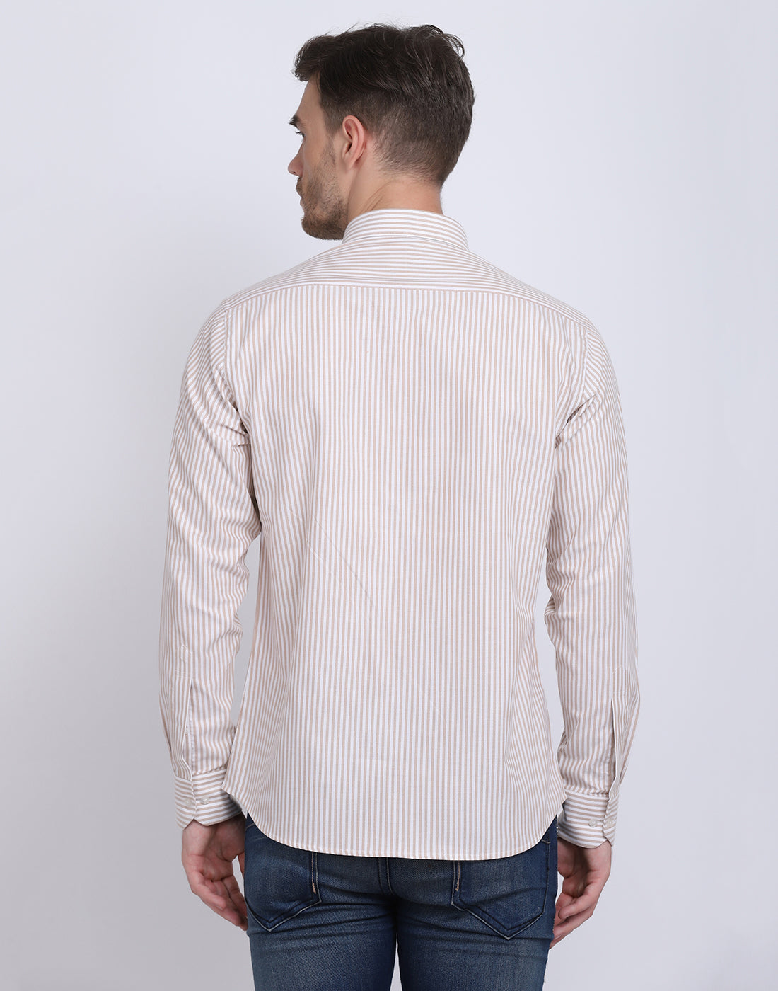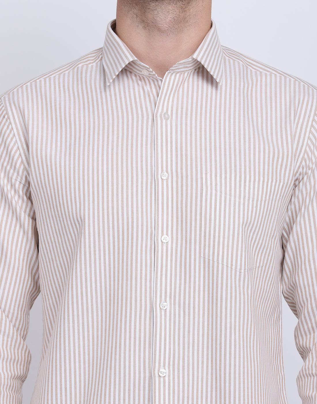 Cotton oxford Casual camel & white striped Shirt