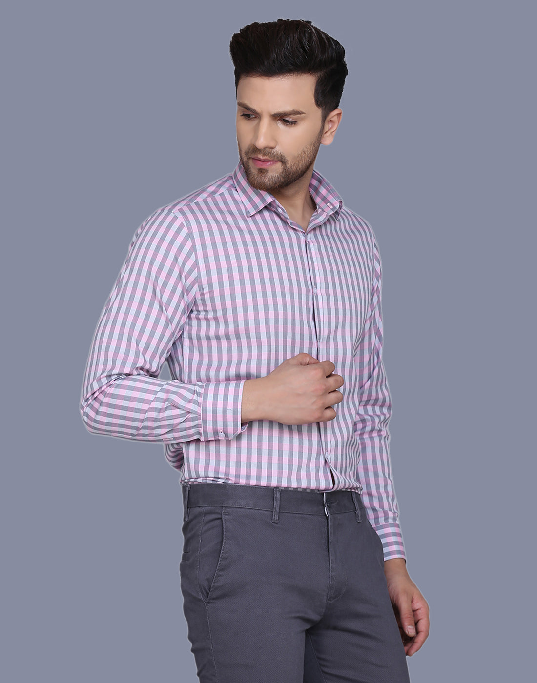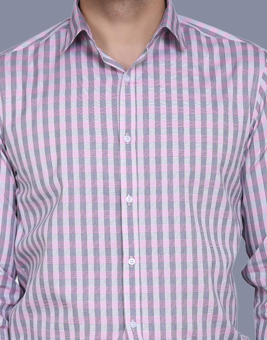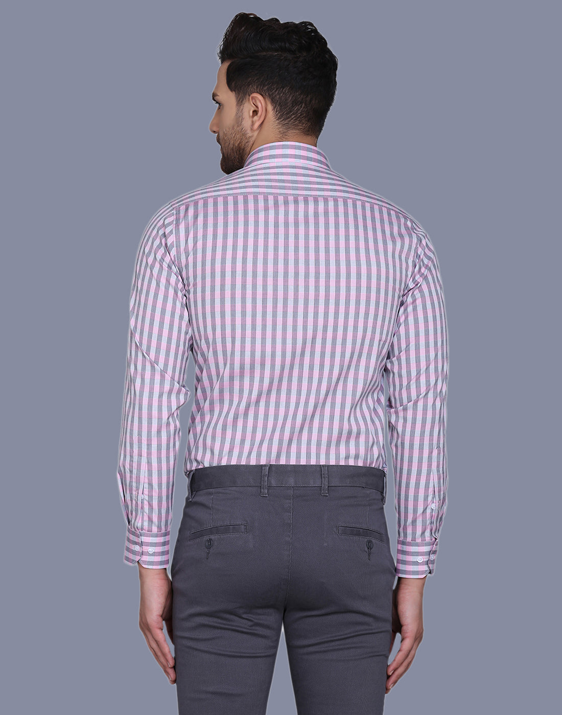 Checkered yarn dyed pink men’s shirt