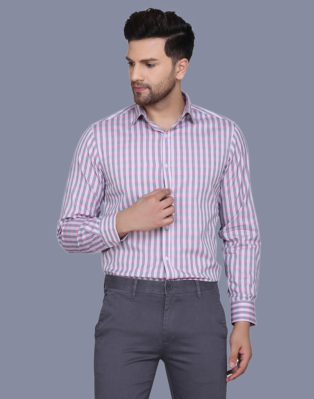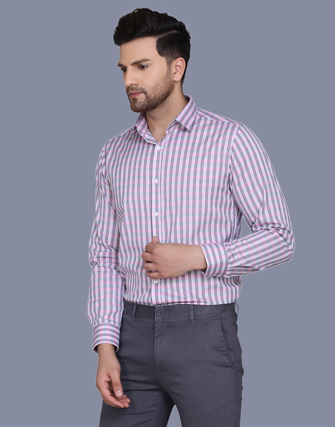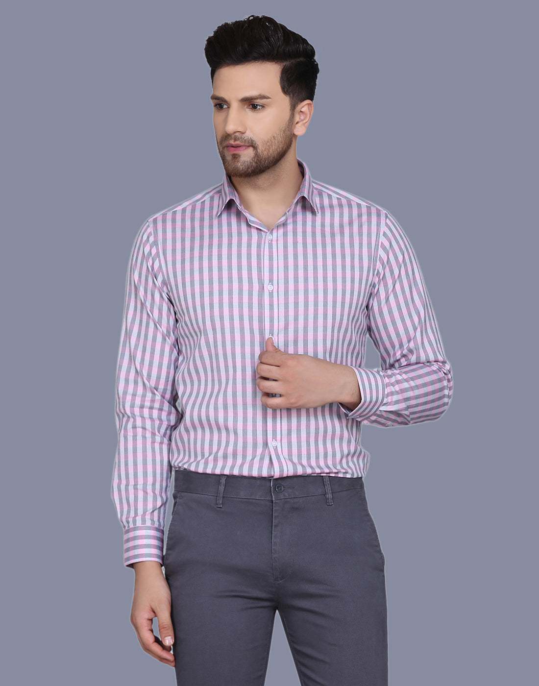 Checkered yarn dyed pink men’s shirt