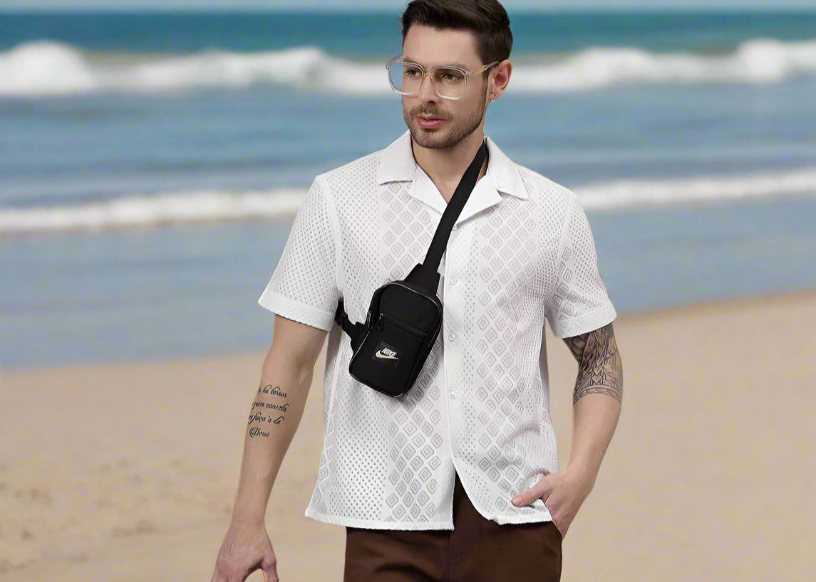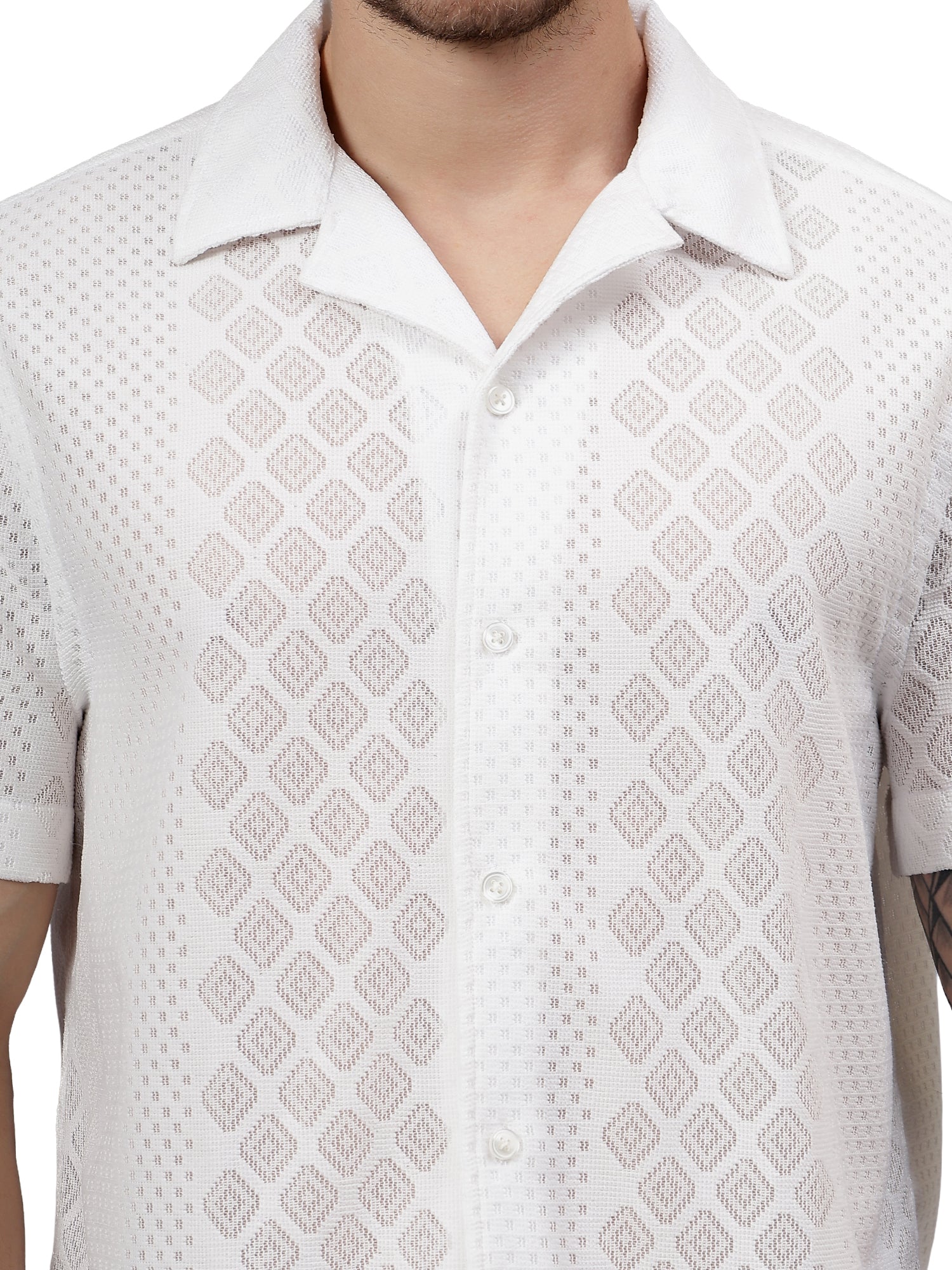 Geo Lace Half Sleeve White Trending Men's Wear Casual Shirt