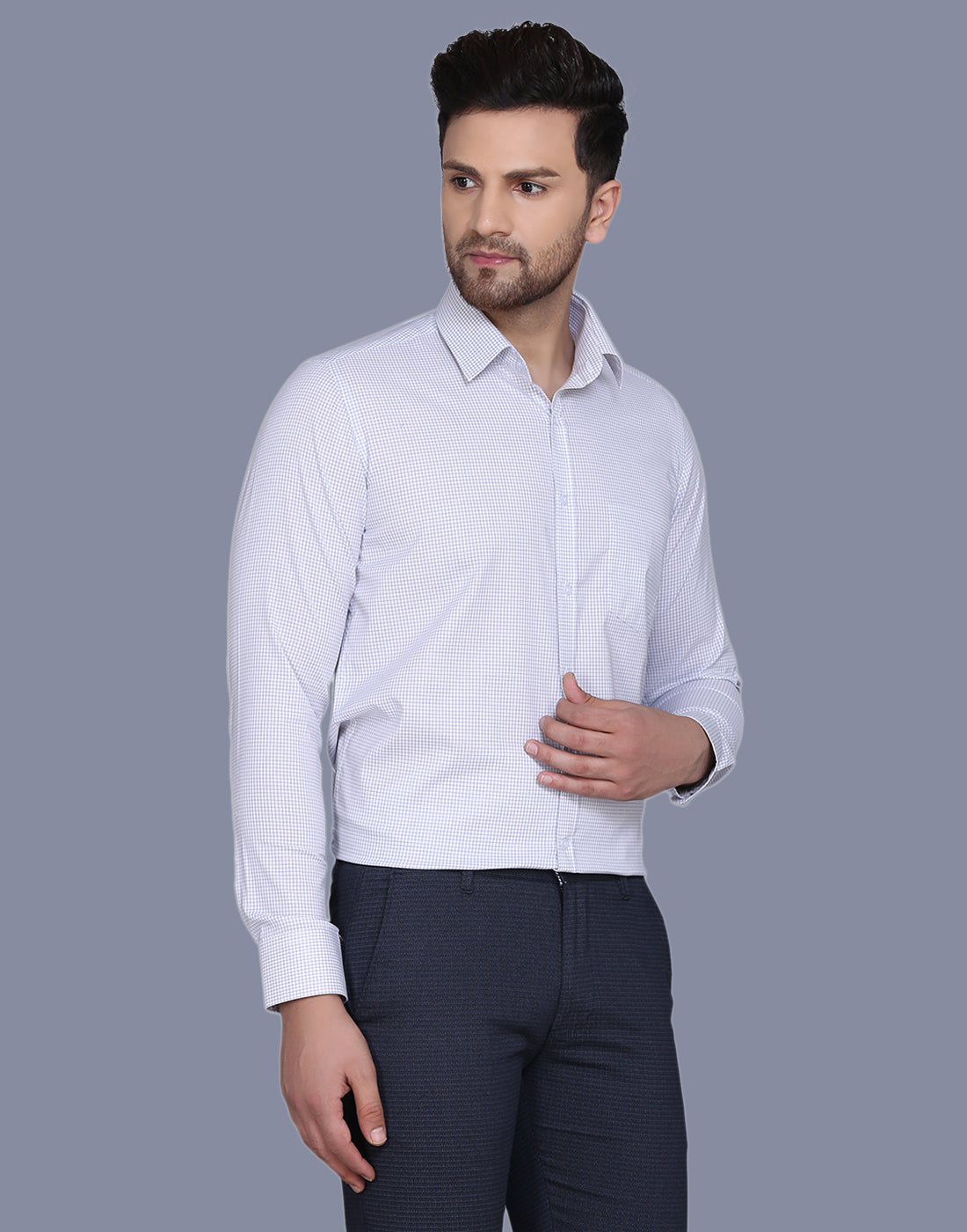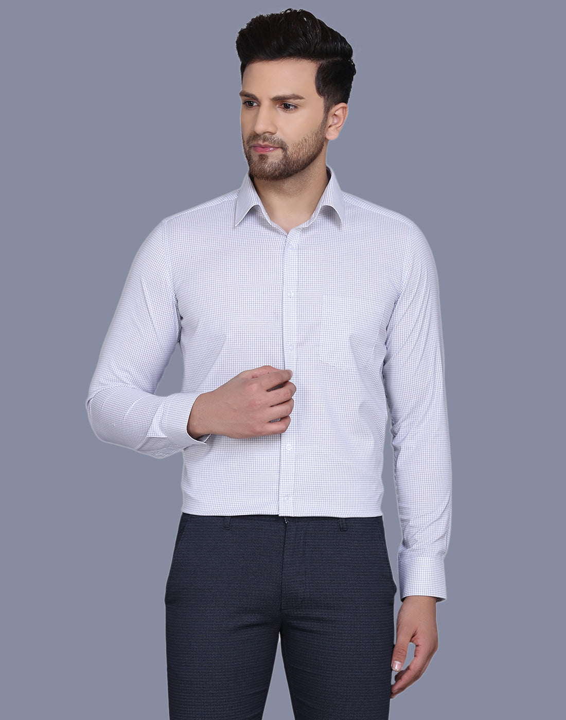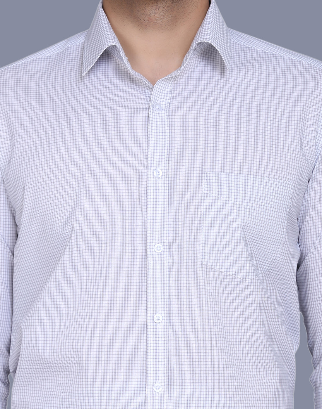 This yarn dyed Cotton micro checkered slim fit formal shirt, has a spread collar, long sleeves, and curved hem, this shirt will give you the perfect amount of comfort and durability. When you're going out on a official lunch, match this piece with formal classic trousers and a pair of dark brown shoes.